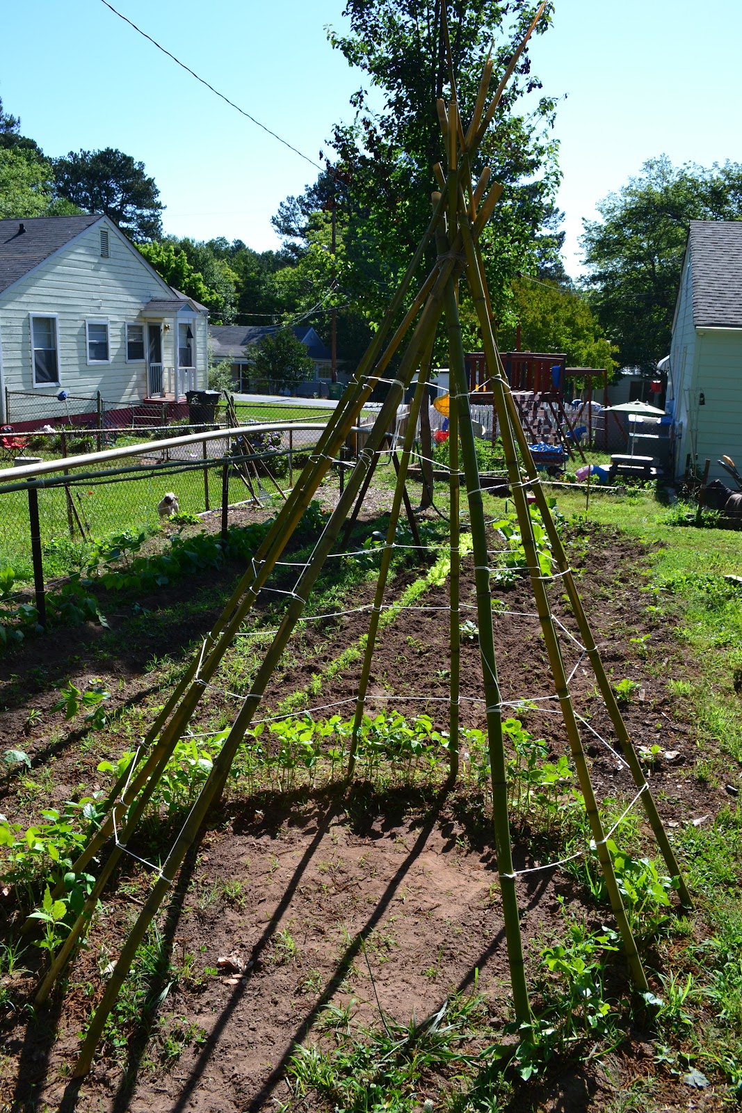 The other idea that we created for the girls is the bean tee pee. Pulled this idea off of Pintrest (thank you Pintrest). We'll have a great crop of beans, pink eyed purple hulls to be exact and the girls will have a fun place to play this summer while we work in the garden.